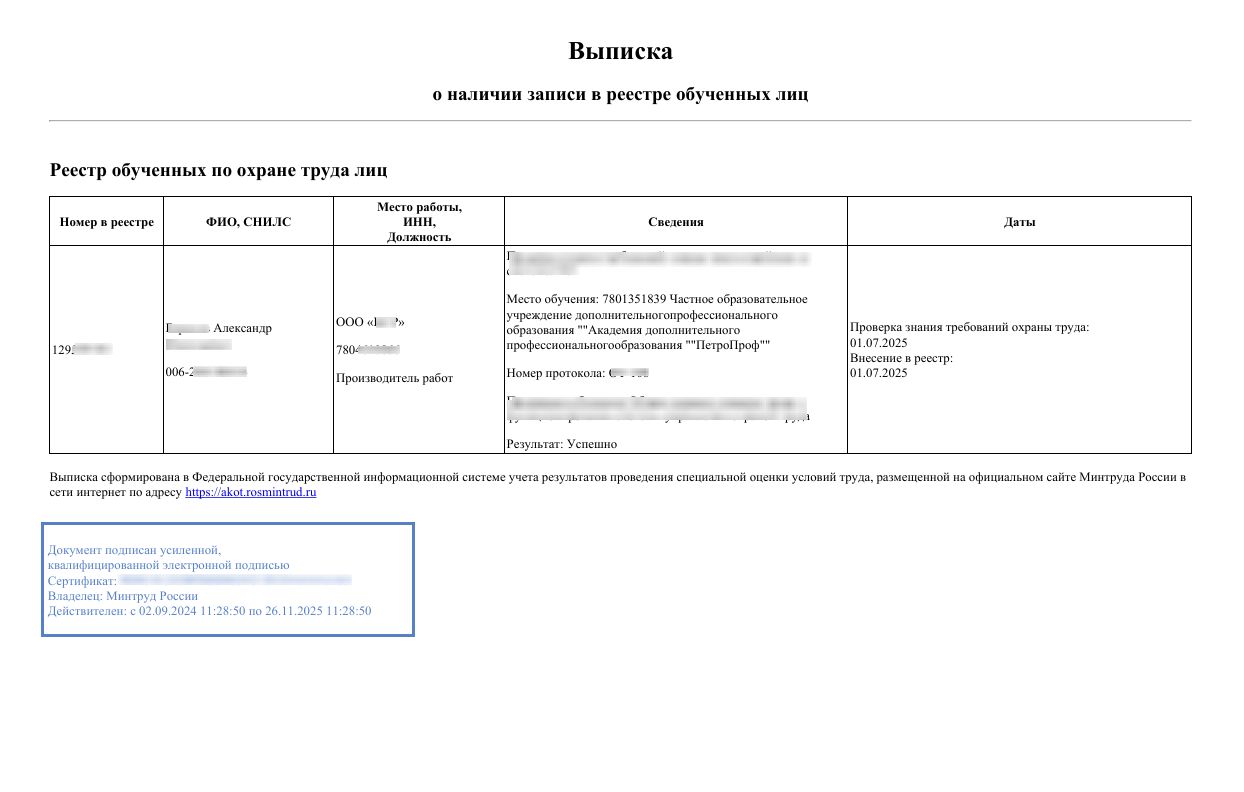 Специалисты, прошедшие обучение, получают необходимые знания для реализации комплексных систем охраны труда, управления рисками и внедрения современных методов обеспечения безопасности на производстве.